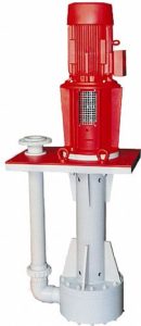 агрессивных сред из крупных резервуаров в промышленных масштабах используются полупогружные вертикальные центробежные насосы. Материалы проточной части выполняются из коррозионно стойких материалов, что существенно расширяет сферу применения таких агрегатов. Насосы данного типа не боятся работы «в сухую». Их конструкция позволяет перекачивать жидкости с высоким содержанием твердых включений без риска повреждения агрегата. Возможные утечки через уплотнения сразу возвращаются в емкость.